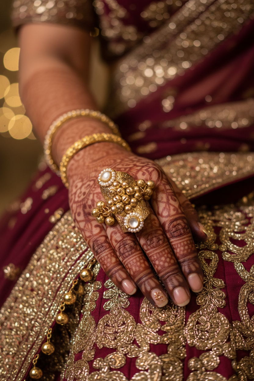 • Embellishments: Kundan-style settings, polki-style stones, pearl-style accents, imitation gemstones