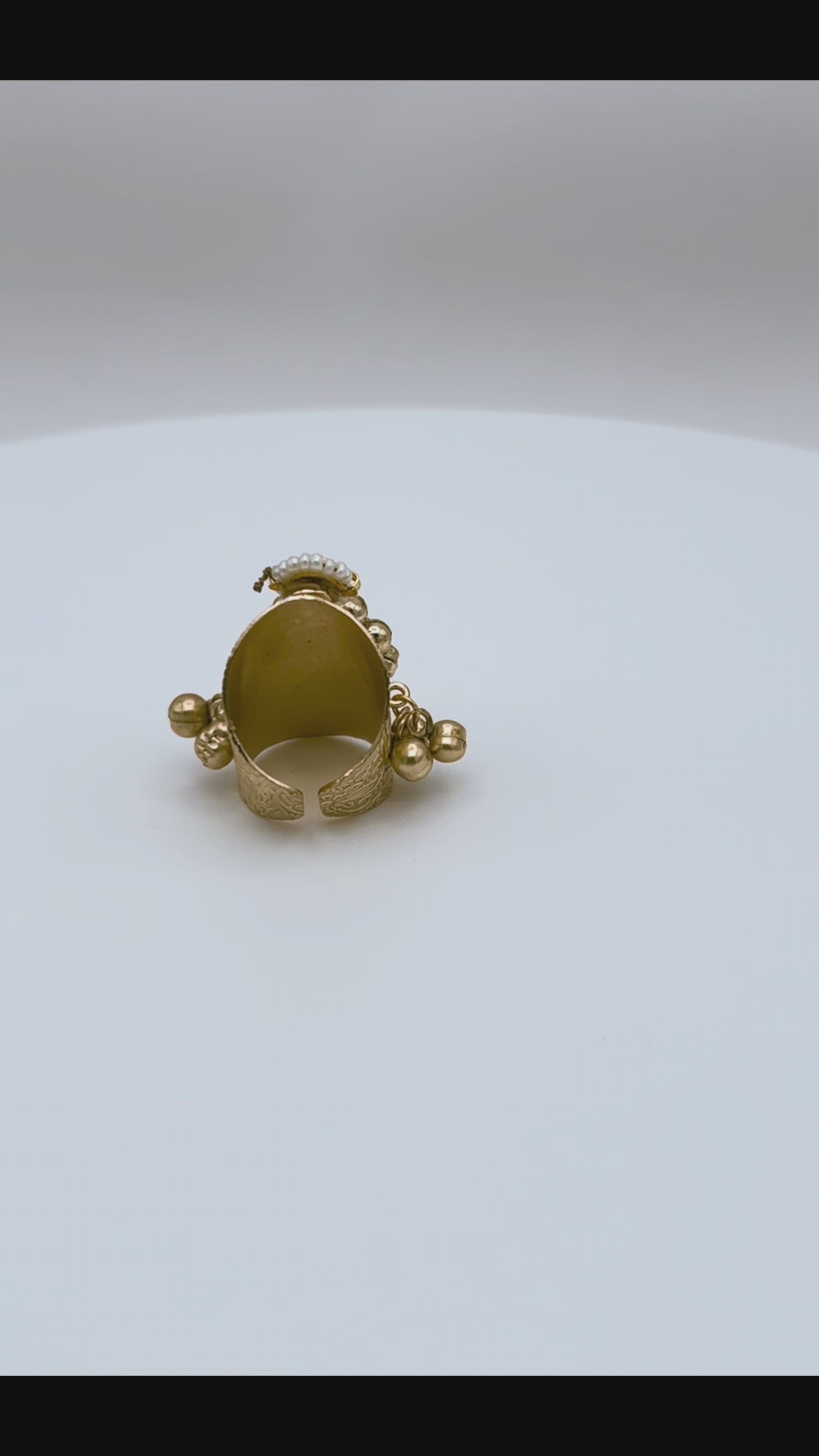 Antique Gold Temple Ring - Statement Piece with Pearl & Floral Detailing