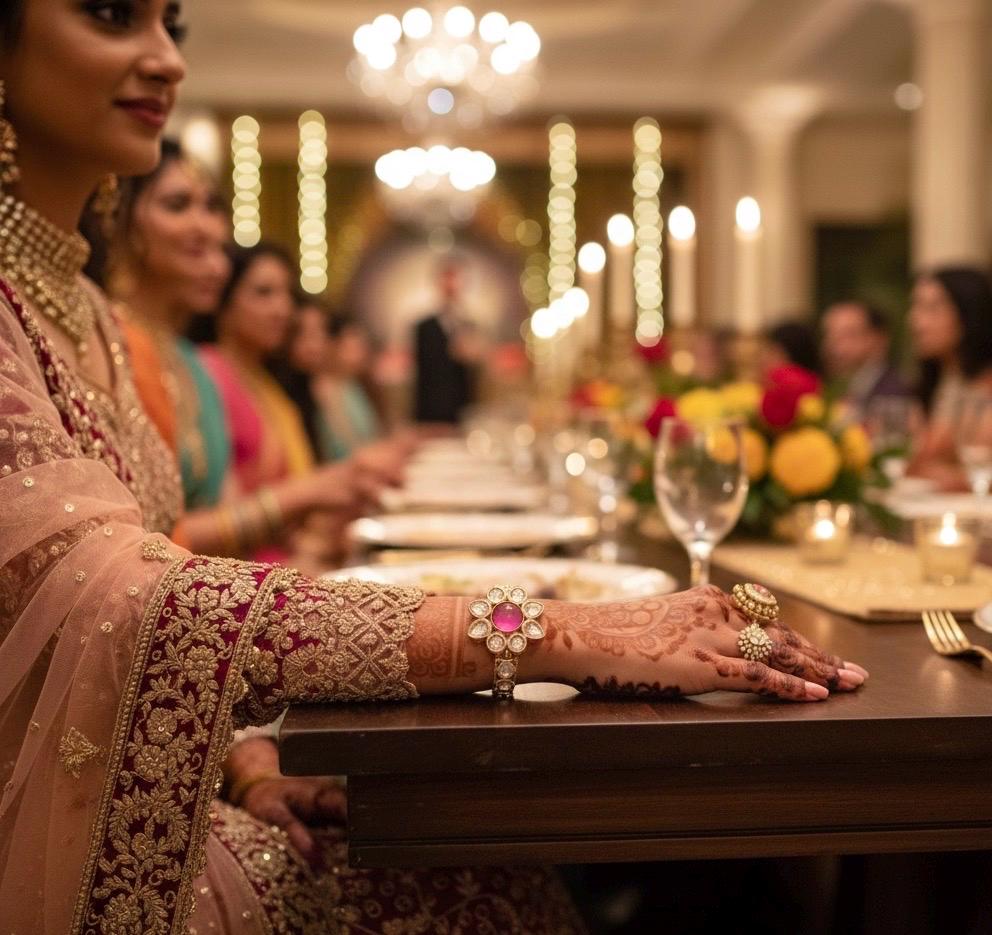 • Embellishments: Kundan-style settings, polki-style stones, pearl-style accents, imitation gemstones